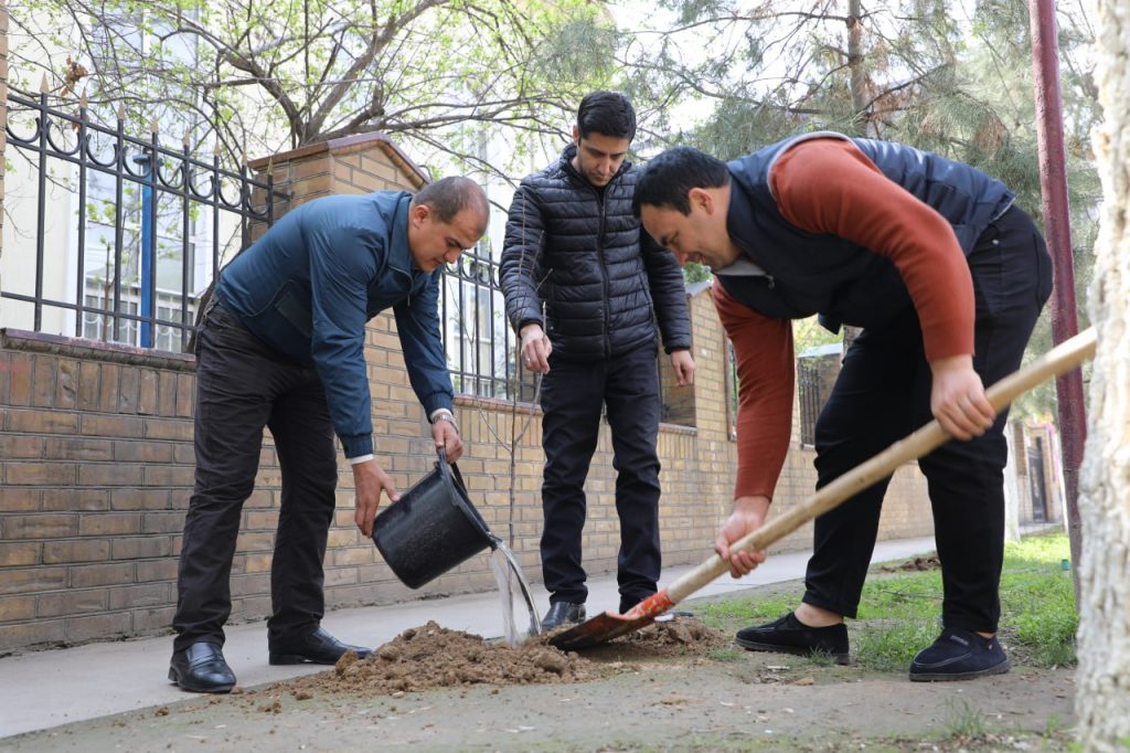 В целях обеспечения реализации государственной программы на «Год охраны окружающей среды и зеленой экономики» во дворе института под лозунгом «Новый Узбекистан – новое экопространство» под руководством ректора Национального института художеств и дизайна имени Камолиддина Бехзода Аббосжона Мирзорахимова были посажены фруктовые деревья и саженцы.